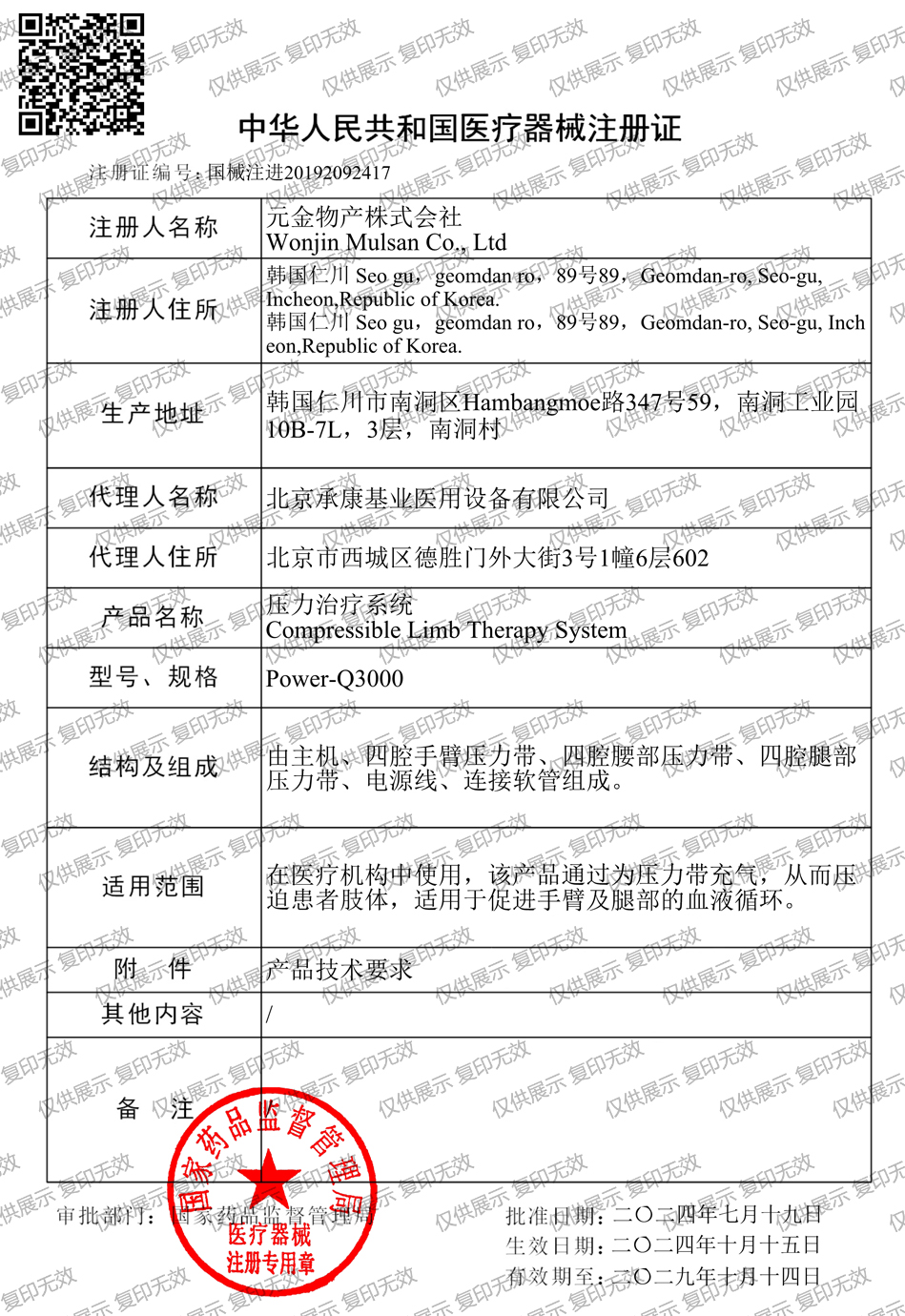 注冊(cè)證編號(hào):國械注進(jìn)20192092417