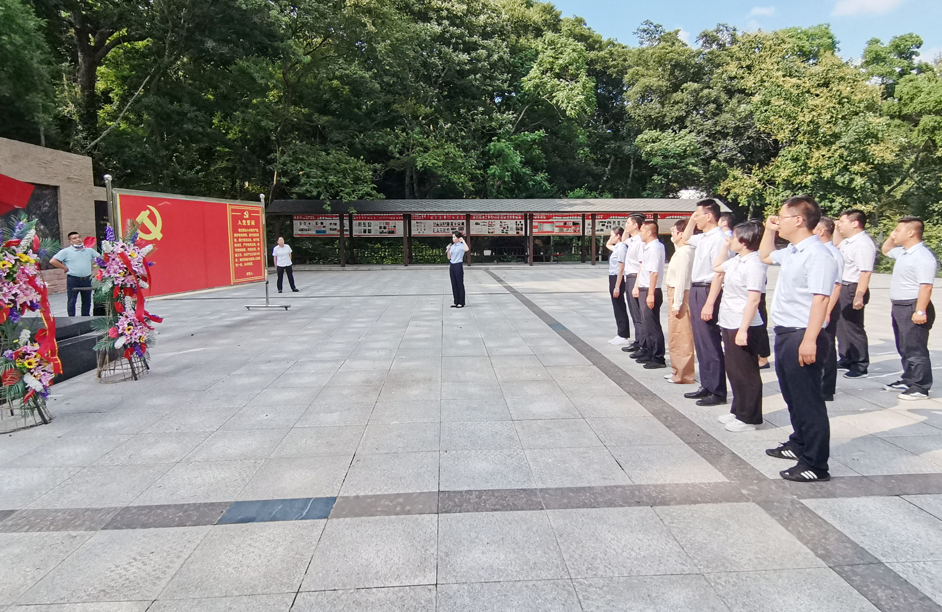 黨員們一同來到南譙區(qū)大柳鎮(zhèn)皇甫山烈士陵園,在新四軍無名烈士紀念廣場,舉辦了莊嚴而具有教育意義的紀念儀式,向革命烈士敬獻花籃、整理緞帶、默哀致敬、鞠躬行禮、重溫入黨誓詞、祭掃烈士墓等。祭奠儀式結(jié)束后,全體黨員來到廣場文化長廊,通過觀看歷史文獻資料、聆聽解說員講解,深切感受了革命戰(zhàn)爭年代的崢嶸歲月,上了一堂深刻而有意義的黨史教育課。